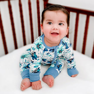 Azure Petals | Convertible Bamboo Zipper Baby Pajamas