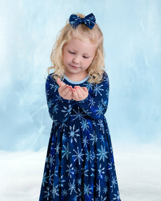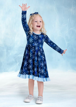 Icy Snowflakes | Toddler & Girls Bamboo Ruffle Twirl Dress