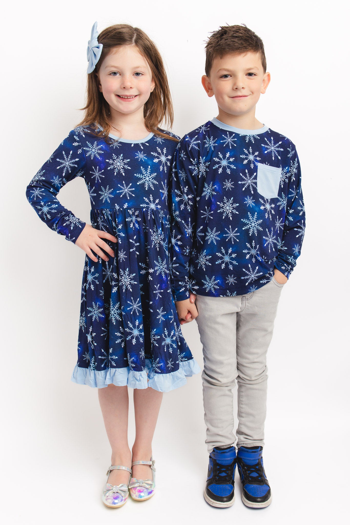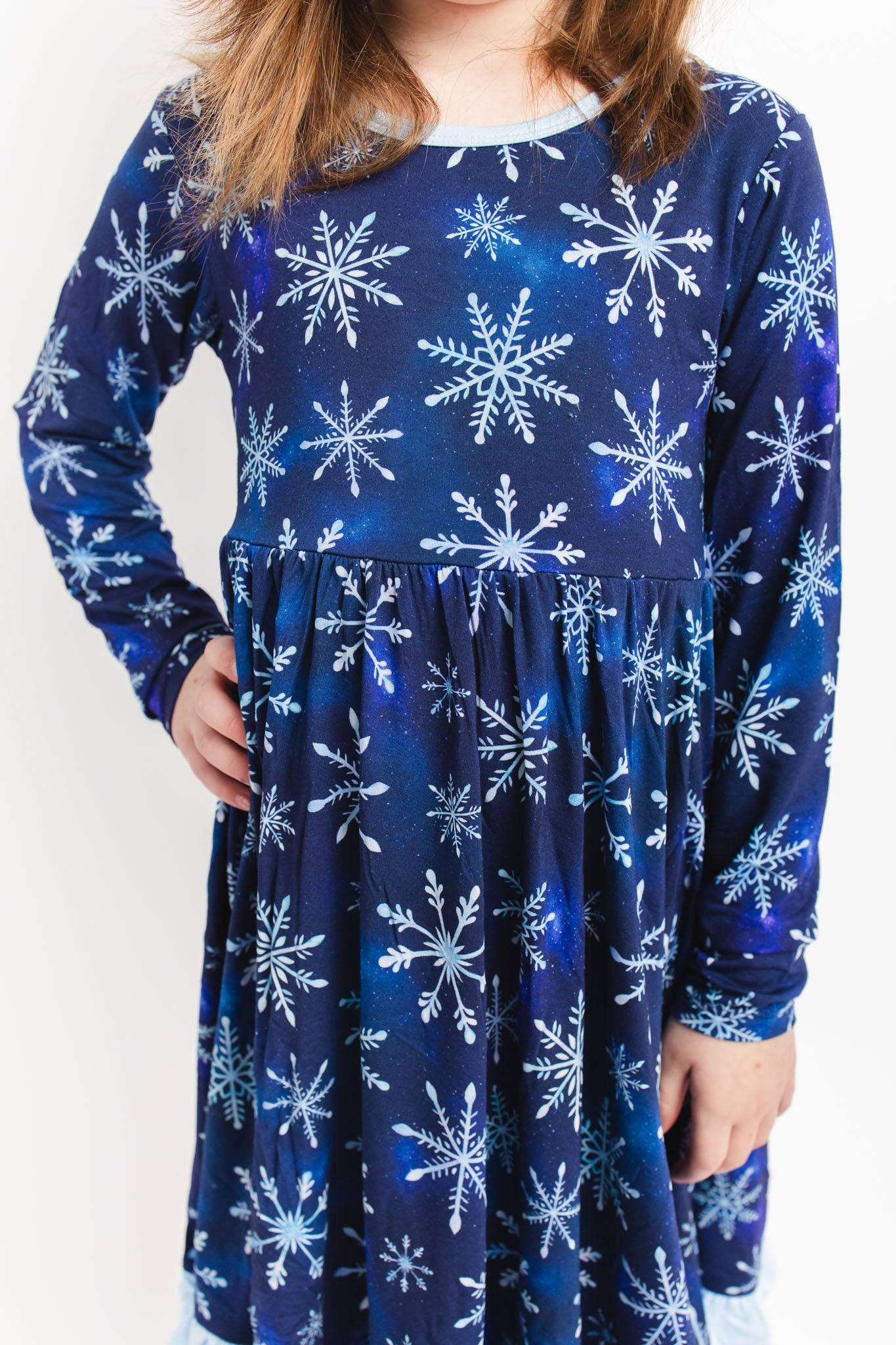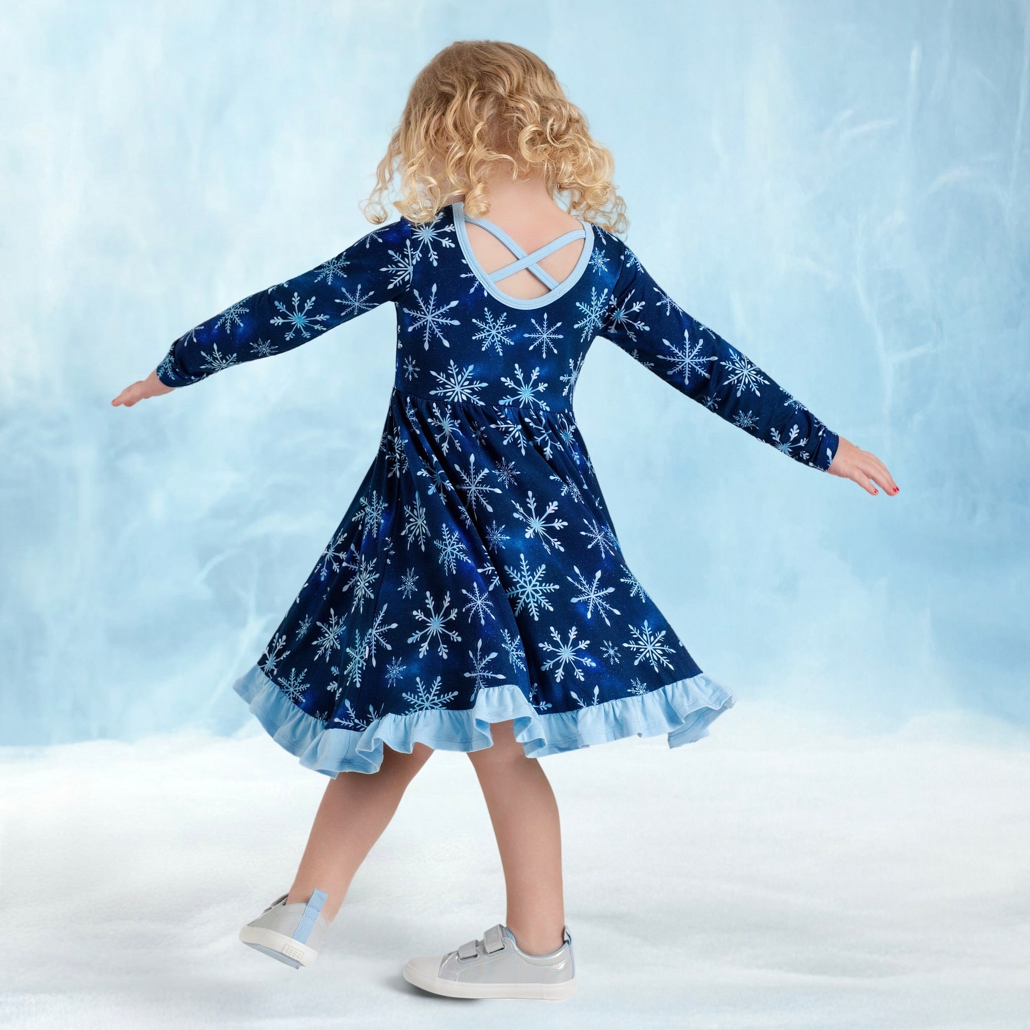 Icy Snowflakes | Toddler & Girls Bamboo Ruffle Twirl Dress