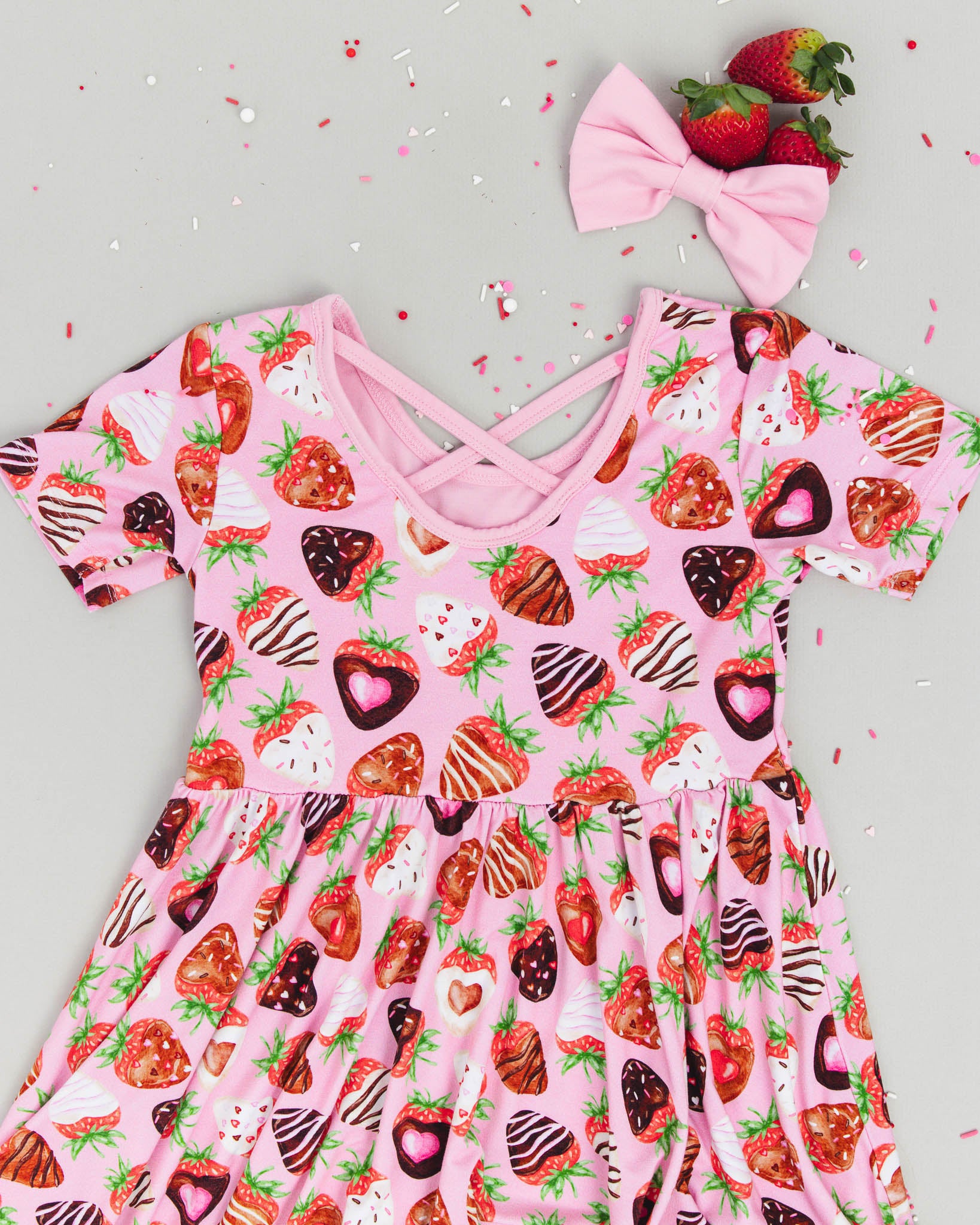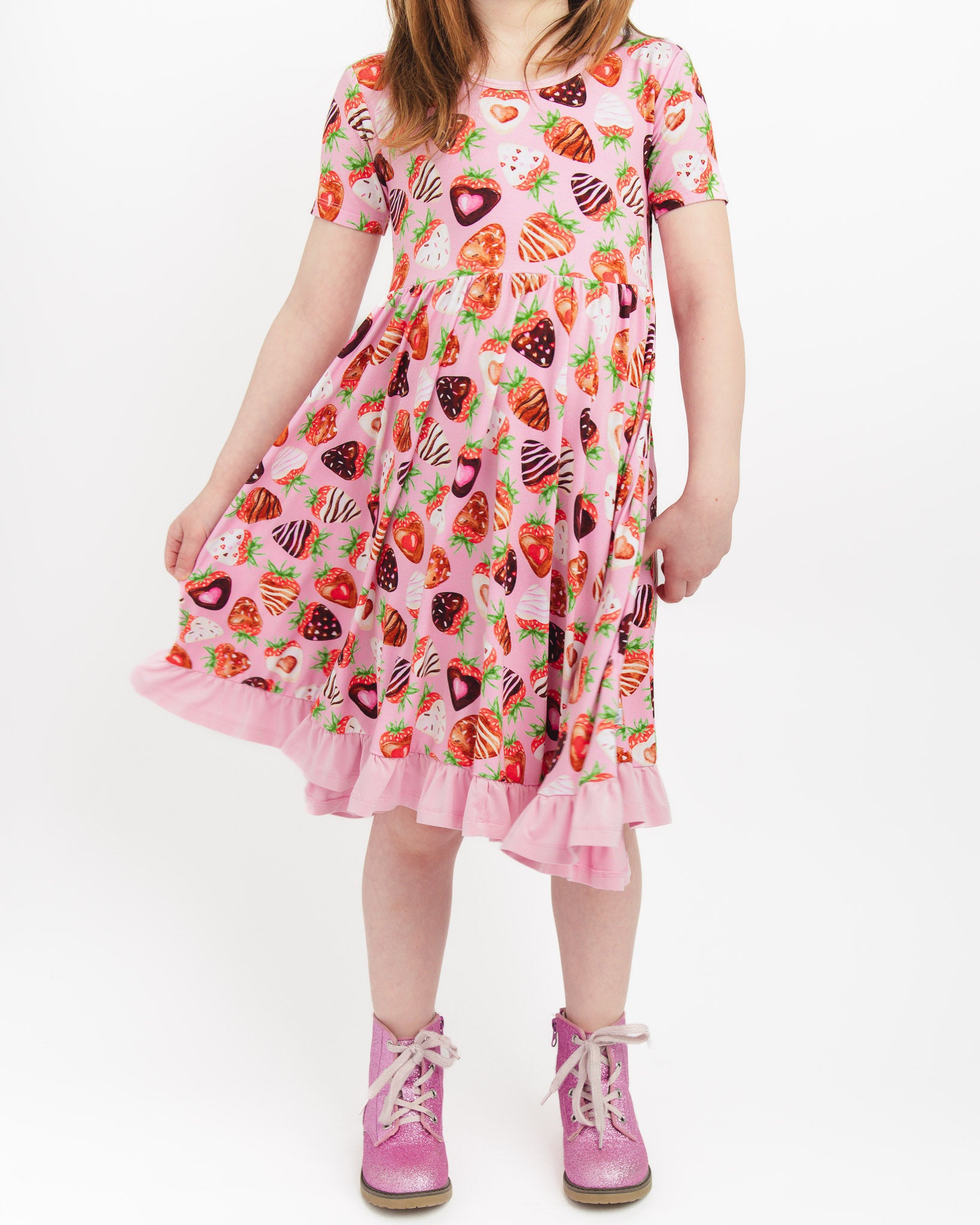 Sweet Strawberries | Toddler & Girls Bamboo Ruffle Twirl Dress