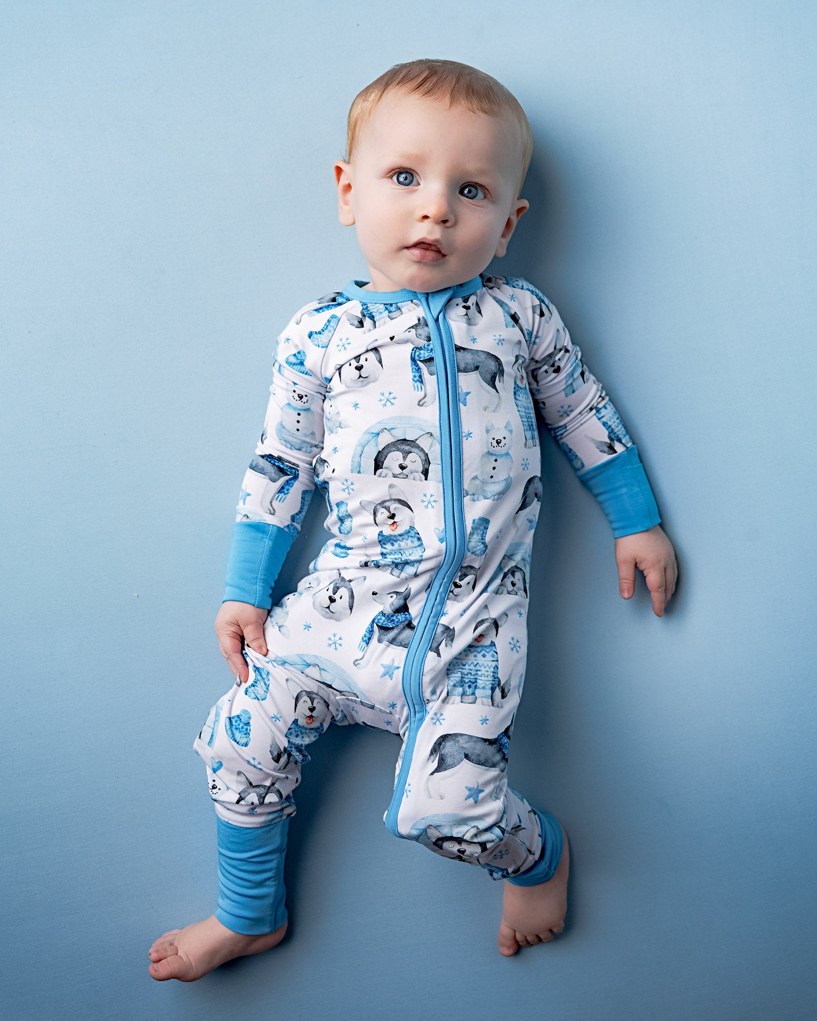 Arctic Huskies | Convertible Bamboo Zipper Baby Pajamas