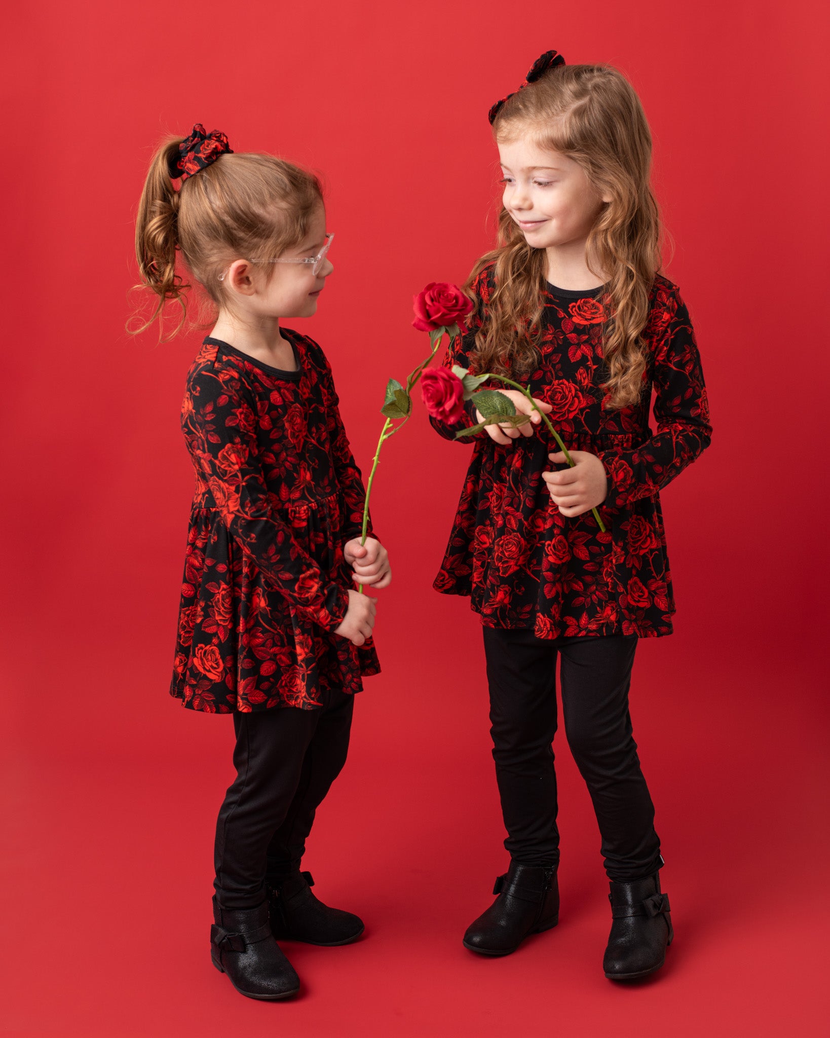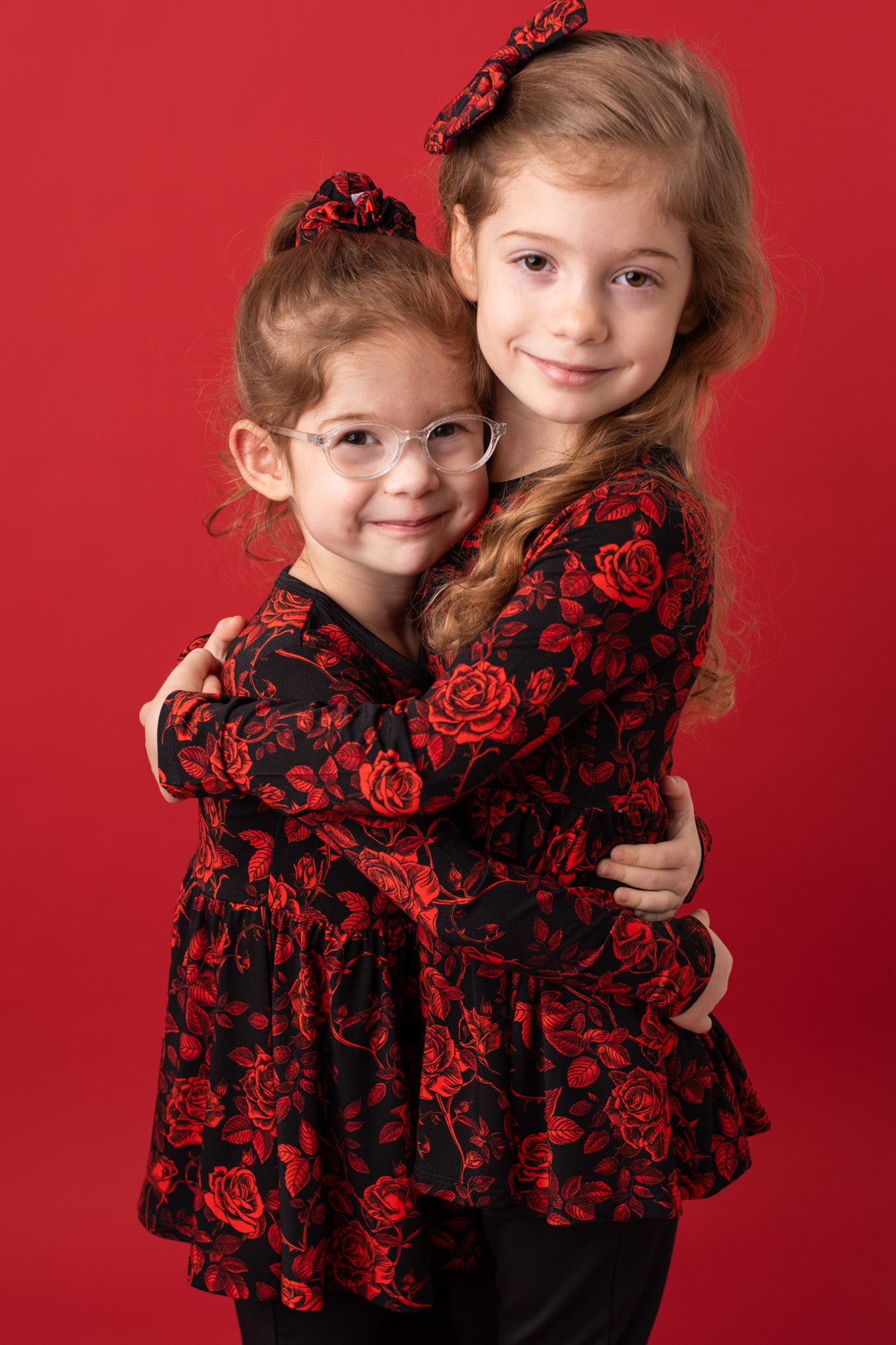 Midnight Roses | Bamboo Toddler & Girls Peplum Top & Leggings Set